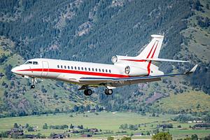Classic paint job on this Dassault Falcon 8X arriving into Bozeman Yellowstone International Airport.